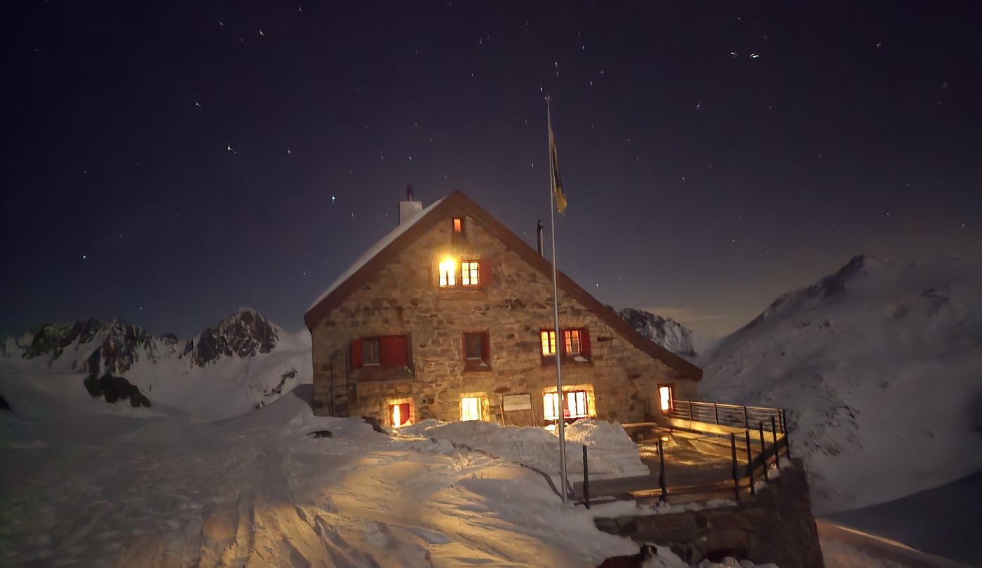 Das Rotondogebiet bietet seit jeher dem Tourenskifahrer eine Vielzahl an abwechslungreichen Tourenmöglichkeiten. 1906 entschieden sich die Lägerer die Hütte am heutigen Standort zu bauen und eröffneten sie 1909, weil sie in einem Gletschegebiet lag und somit prädestiniert war für das damals in Mode kommende Skifahren. Auch heutzutage hat sich daran nichts geändert, ausser dass die Hütte nicht mehr von Gletscher umgeben ist. Dafür sind wir aber mit unserer Lage recht schneesicher.