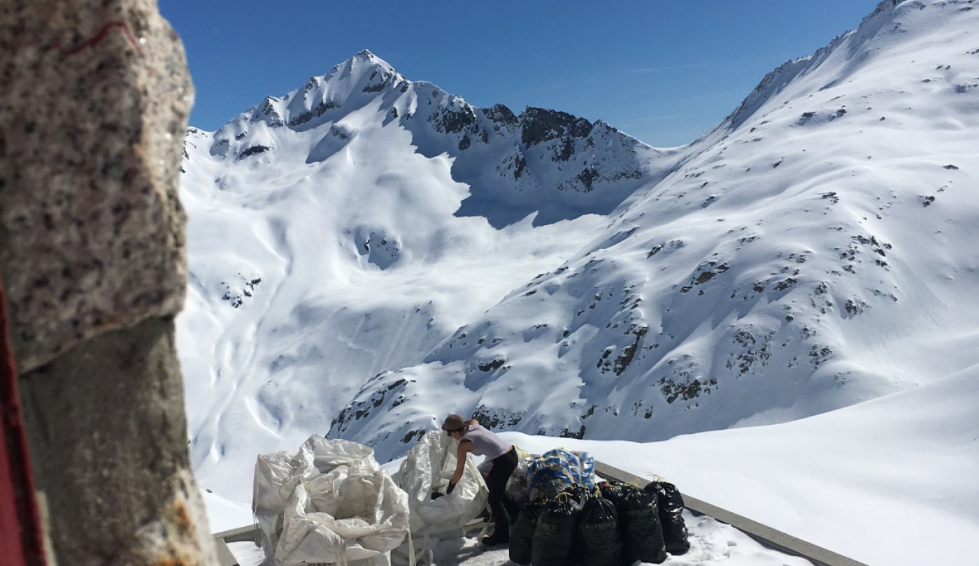 Den Abfall trennen wir gleich vor Ort und kompostieren so viel wie möglich. Ende Saison wird das Leergut und der Kehricht in drei bis vier Rotationen heruntergeflogen und dann in einen Kontainer einer Entsorgungsfirma umgeladen. Früher erledigten wir dies selber, mittlerweile ist die Abfallmenge derart gestiegen, dass die Selbstentsorgung zu teuer und zu aufwändig geworden ist. Die Entsorgung bleibt aber ein hoher Aufwands- und Kostenpunkt und in grösseren Hütten sammelt sich der Abfall zu Bergen an. Deshalb ist es in Berghütten gang und gäbe, dass der Gast seinen selbstmitgebrachten Abfall wieder mit nach Hause nimmt.